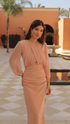 Dieses nude-farbene Chiffonkleid mit Kreuzhalsausschnitt ist die perfekte Wahl für die stilvolle Gästin bei Veranstaltungen wie Hochzeiten, Abendessen im Frühling, Kommunionen, Taufen oder als elegante Mutter. Es vereint mühelos Stil und Komfort, sodass Du Dich den ganzen Tag über wohl und gleichzeitig stilvoll gekleidet fühlst.