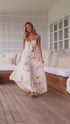 Le buste est décoré d'une fausse cravate décorative et d'un trou de serrure, ajoutant une touche d'élégance. Ce maxi longueur cheville est élégant sans effort. 100% viscose, le mannequin porte une taille XS.